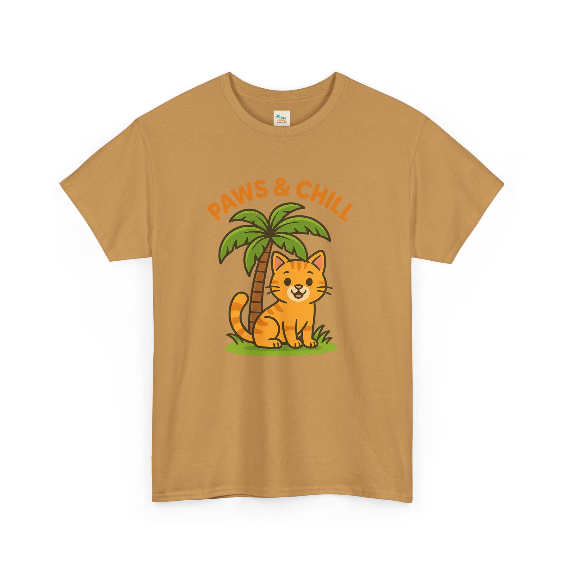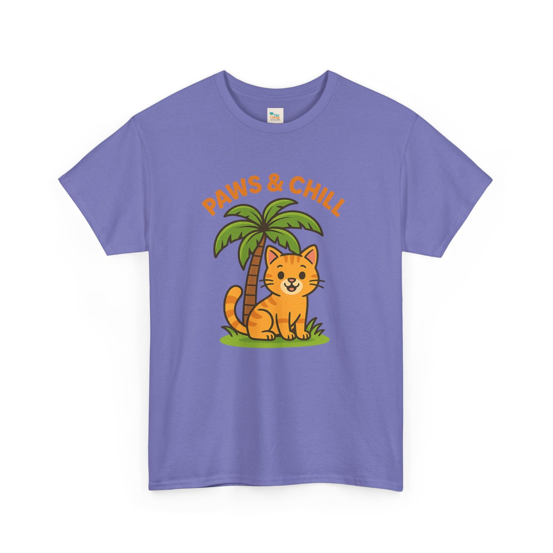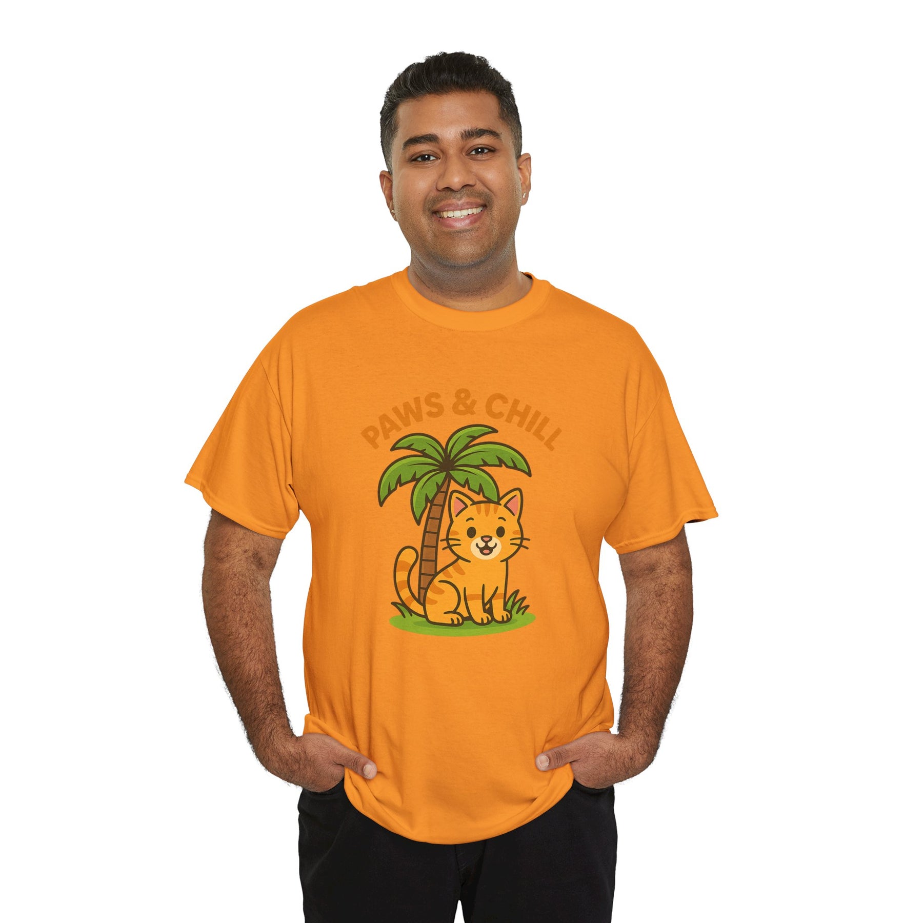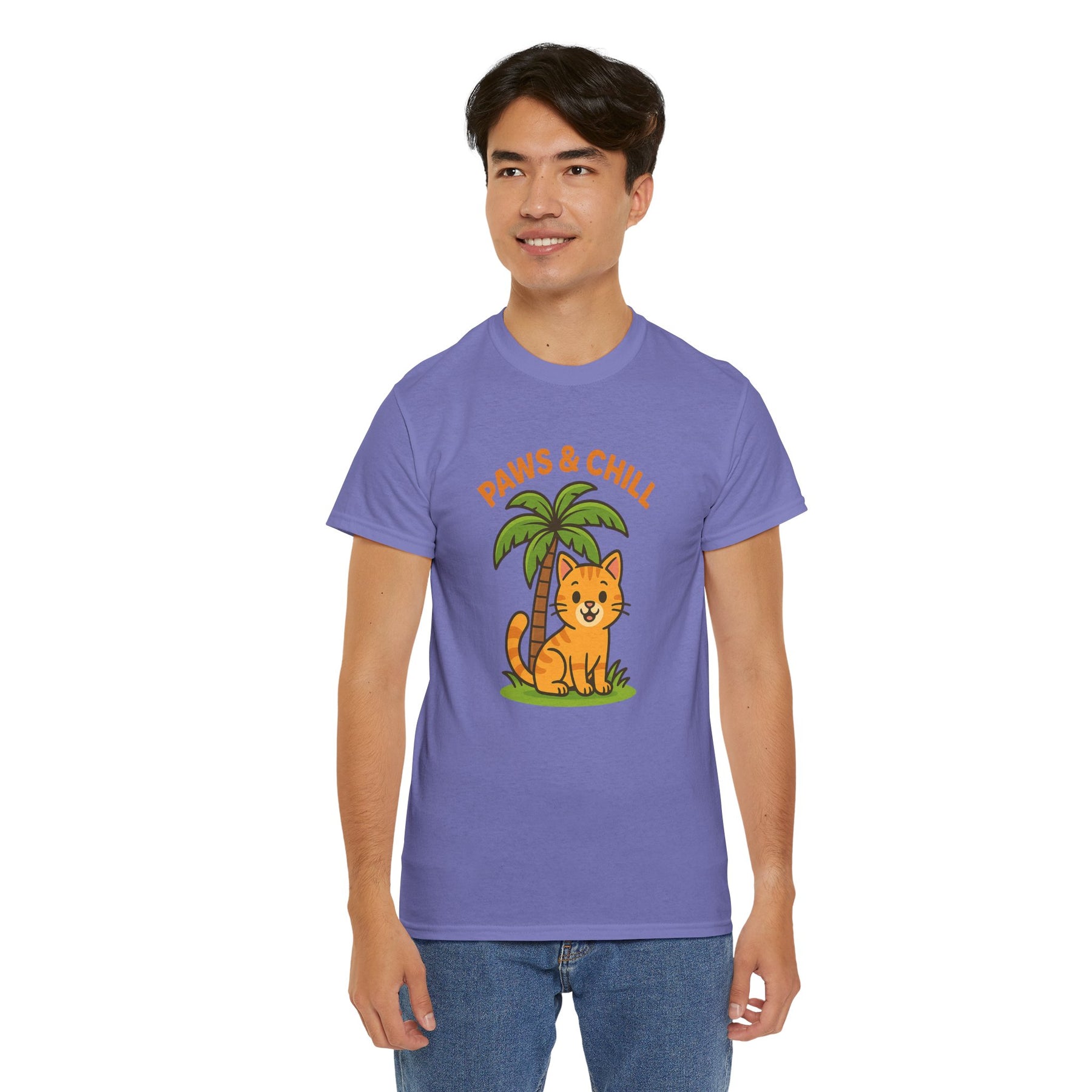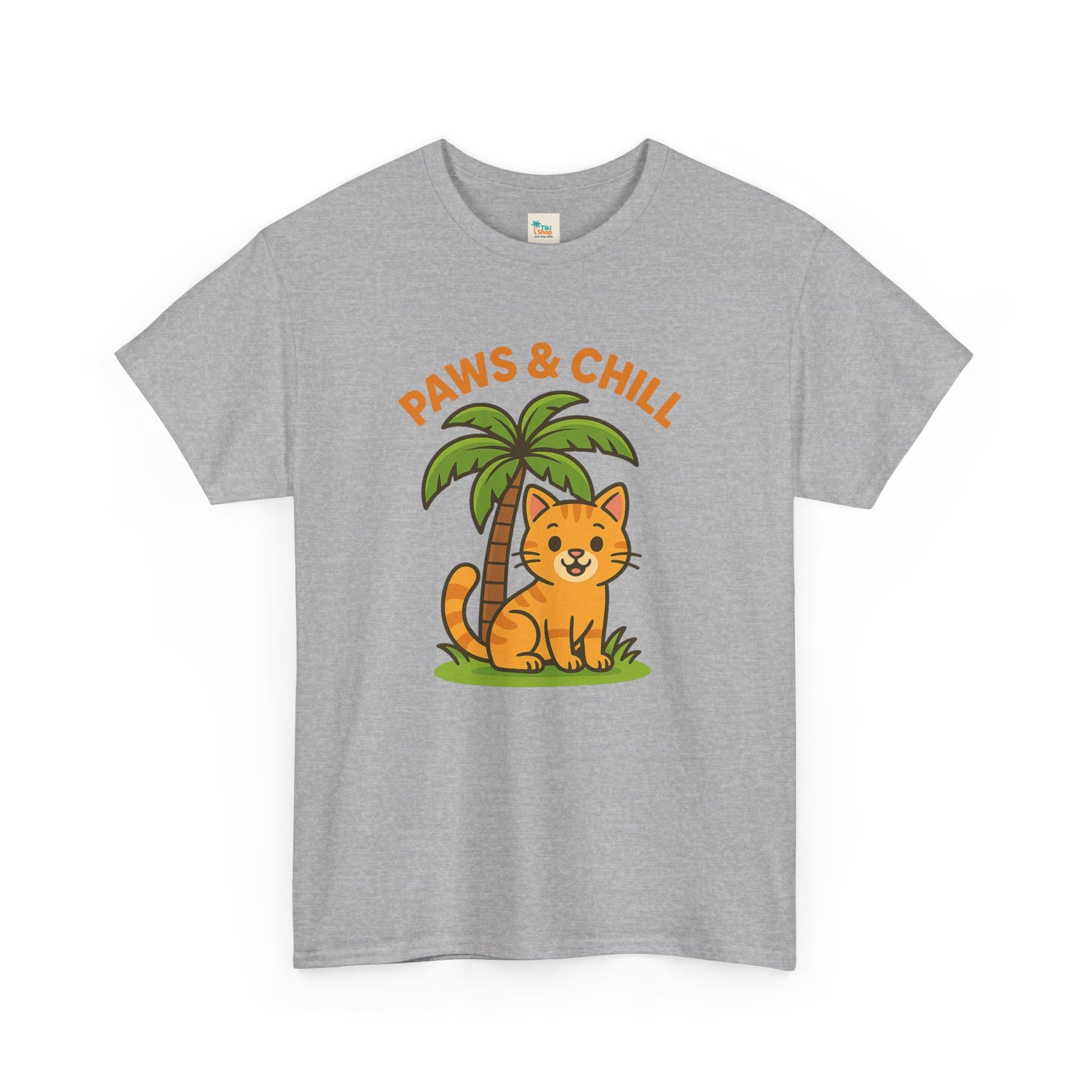 Unwind in style with our "Paws & Chill" cat t-shirt! Featuring a chill kitty lounging by a palm tree, this design is purr-fect for cat lovers who enjoy cozy vibes and tropical dreams.